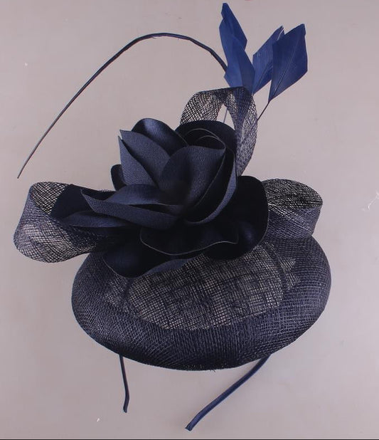 Navy Single Rose Pillbox Fascinator