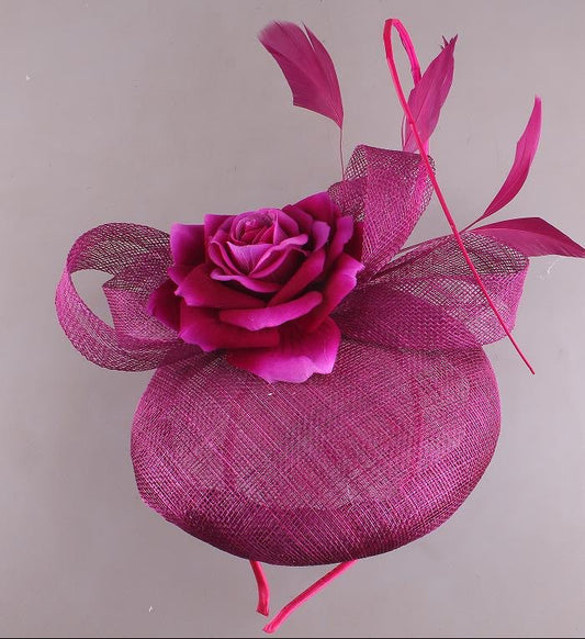 Magenta Single Rose Pillbox Fascinator