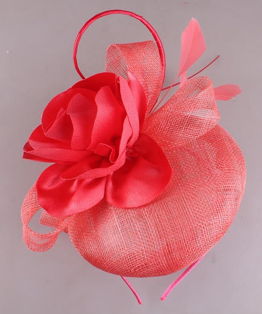 Coral Single Rose Pillbox Fascinator