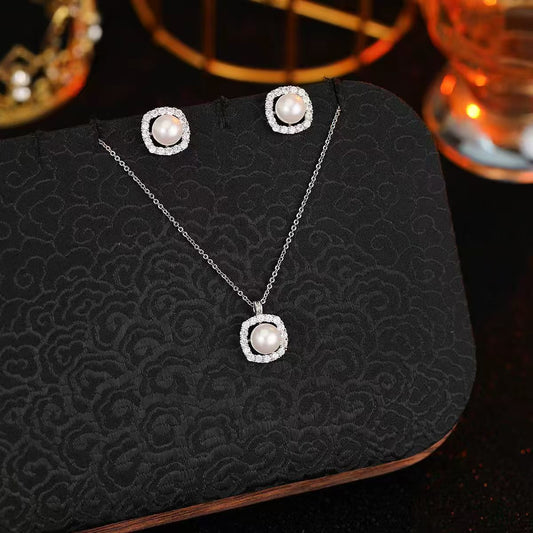 Crystal Pearl Stud Silver Set