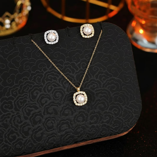 Crystal Pearl Stud Gold Set
