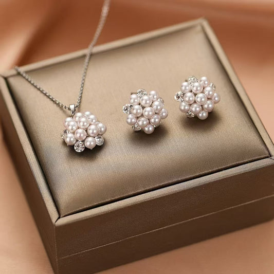 Pearl Cluster Silver Set