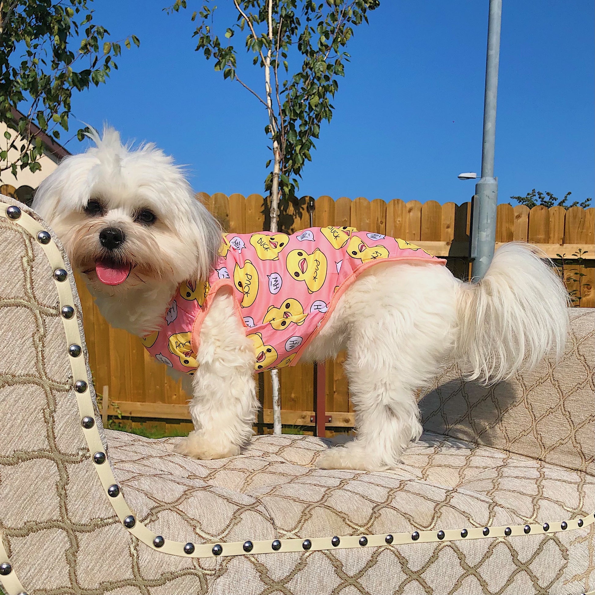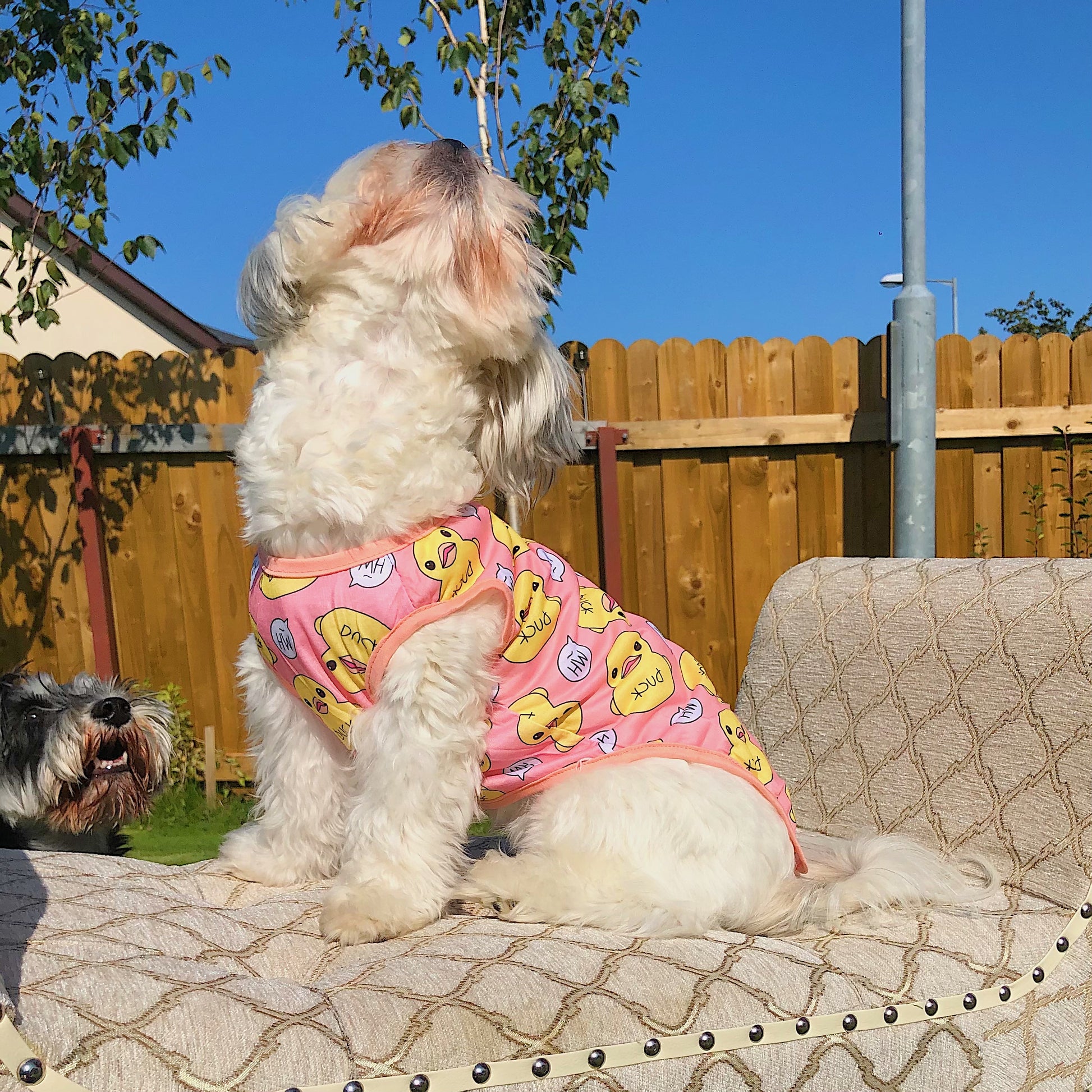Adorable lightweight cartoon duck and speech bubble patterned sleeveless shirts.